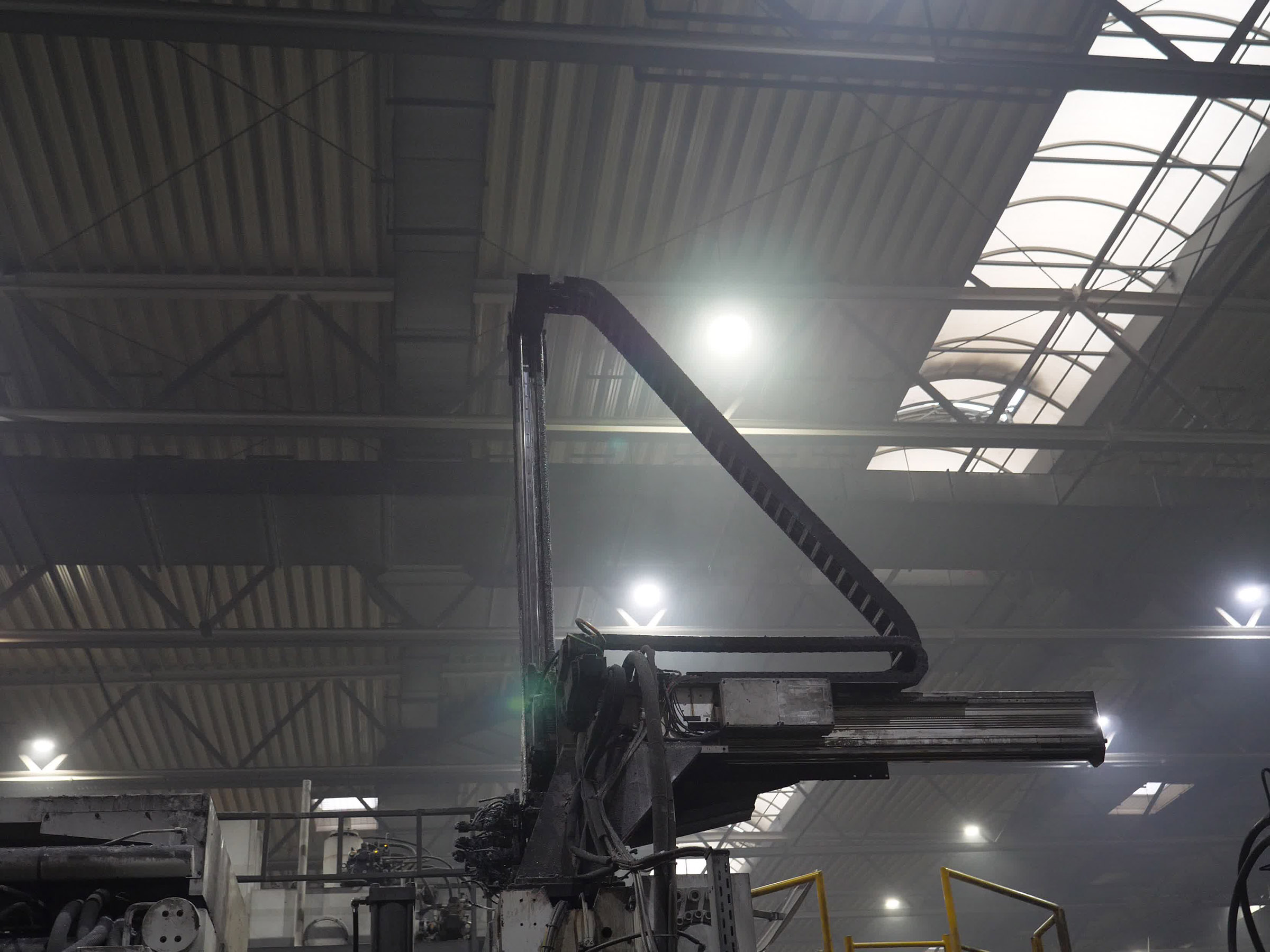 Extended is the execution of a cold chamber die casting machine for heavy, compact and little delicate products. This includes all types of cylindrical or cuboidal products without special shapes.